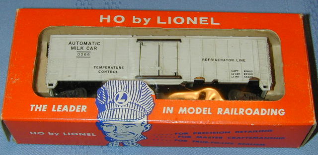 Lionel HO 0366 Operating Milk Car in Like-New Condition in Original Box (8/9). Car is with sealed envelope and instructions. Price: $105