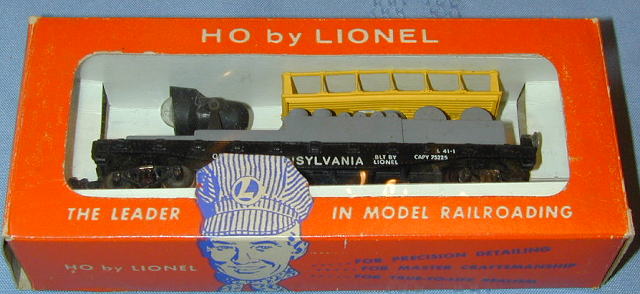Lionel HO 0880 Lighted Maintanence Car in Excellent Condition in Original Box (8 - reproduction insert). The car yellow railing has a slight warp on photo side. Price: $80