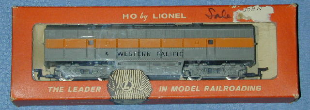 Lionel HO 0523 Western Pacific FM Dummy B Unit in EX Condition/OB (8 - price tag removal). 2 jumper cables included. Insert has been pushed in on left side but complete. Price: $135
