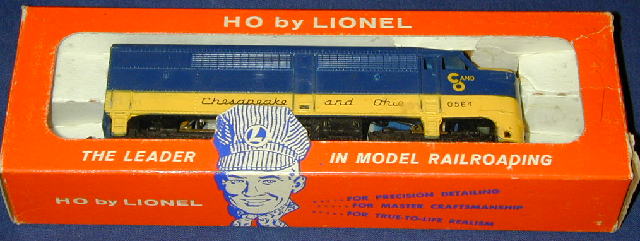 Lionel HO 0564 C&O Powered A Unit Alco in excellent condition with hairline step fracture in orignal box (8 - one endflap with tear).