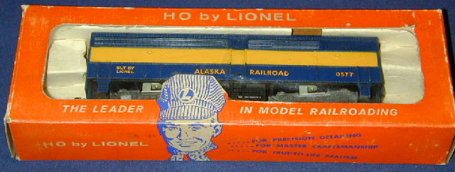 Lionel HO 0577 Alaska Dummy B Unit in excellent condition in original box (7). The box has seen moisture that has wrinkled lense and unglued box.